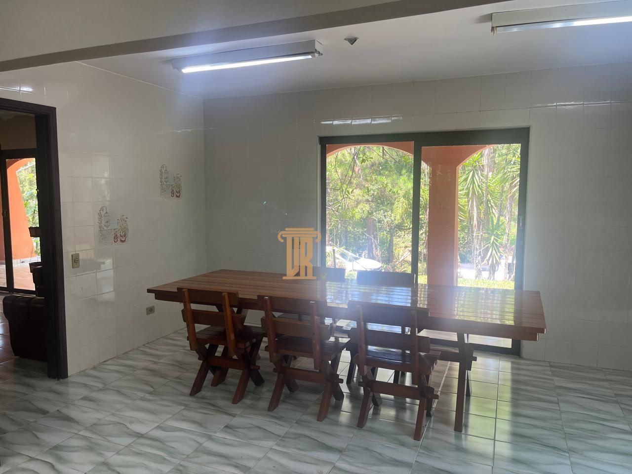 - Casa sede possui uma ampla sala e cozinha toda envidraçada com vista para o lago, banheiro social, conjugados a amplo salão de festas com churrasqueira e forno a lenha, também todo envidraçado e vista para o lago, banheiros de apoio ao salão e piscina, 03 suítes externas independentes e casa de apoio anexa com suíte e cozinha.
